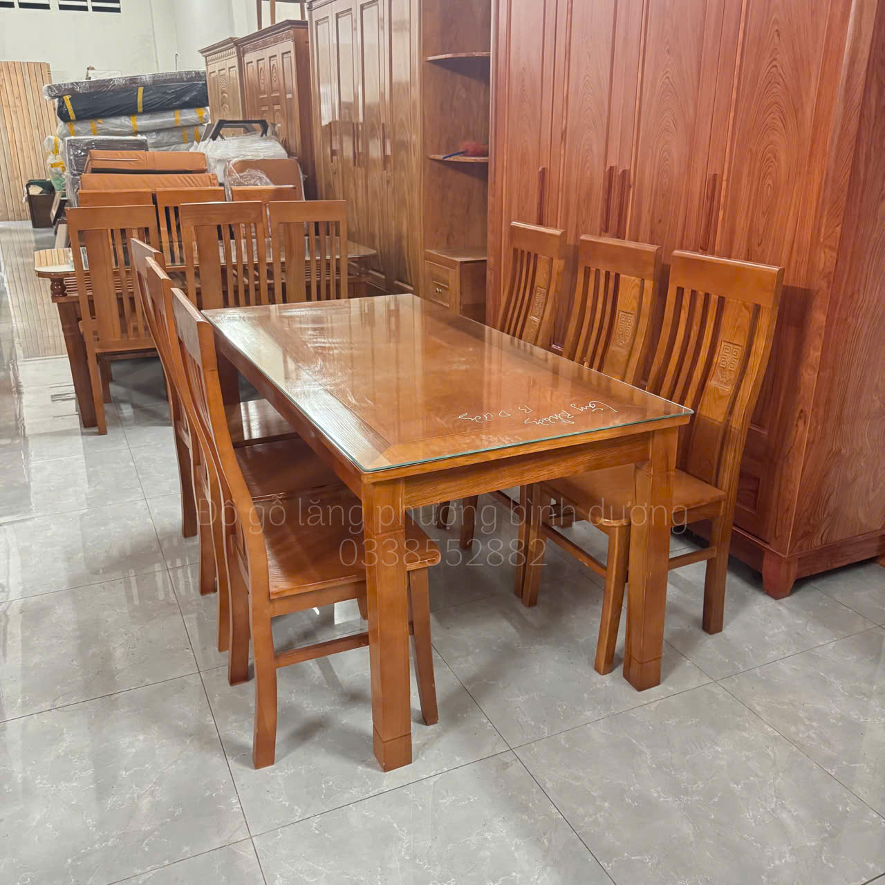 Bộ bàn gồm 6 ghế ngồi rộng rãi, giúp cả gia đình có những bữa cơm sum vầy thoải mái. Kiểu dáng đơn giản nhưng hiện đại, dễ dàng kết hợp cùng các đồ nội thất khác trong phòng ăn, tạo nên tổng thể hài hòa và sang trọng.