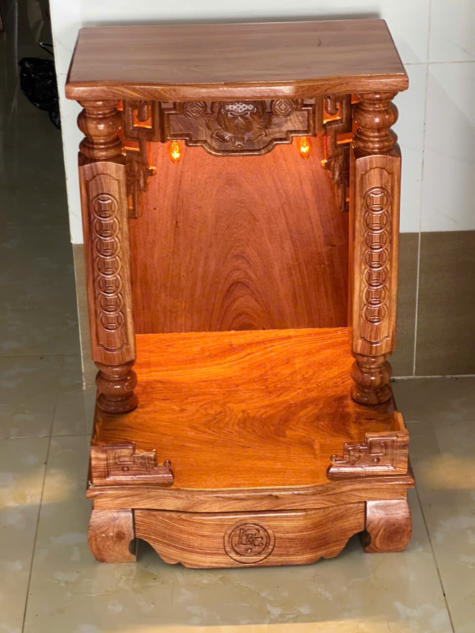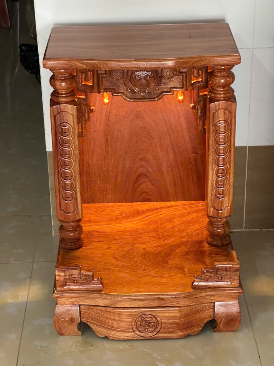 Bàn Thờ Thần Tài Ông Địa Gỗ Hương Đá Chạm Đồng Tiền Cao Cấp