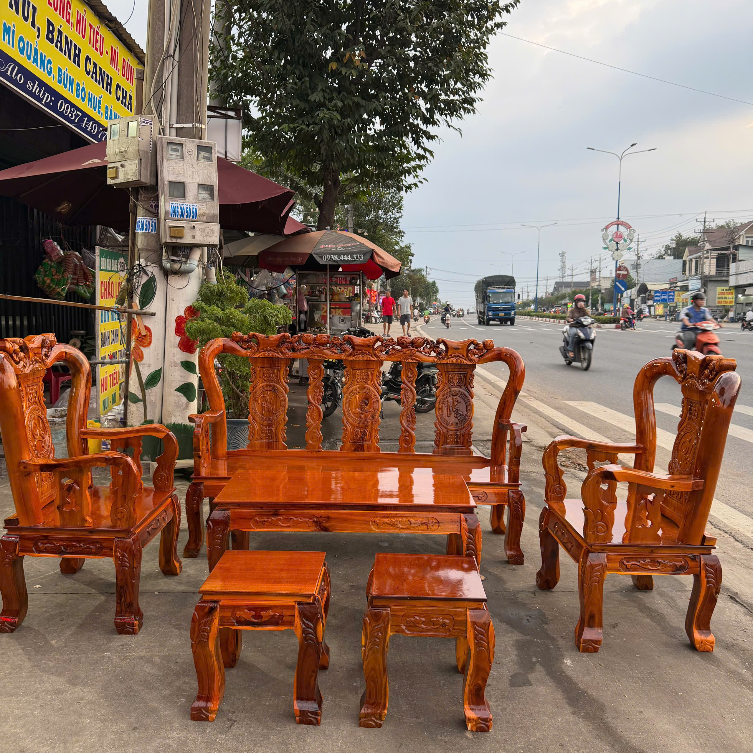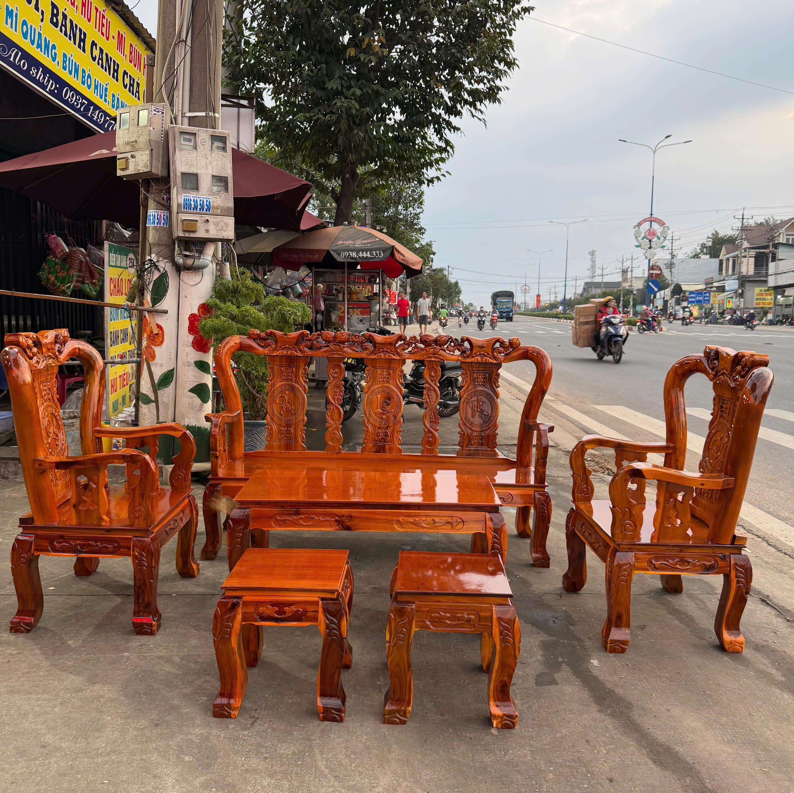 Salon gỗ tràm bông vàng cột 8 bộ 6 món là lựa chọn hoàn hảo cho gia đình yêu thích phong cách cổ điển sang trọng. Sản phẩm đang có sẵn tại xưởng với chính sách miễn phí vận chuyển bán kính 30km. Hãy liên hệ ngay Nội Thất Lăng Phượng qua hotline 0338.552.882 hoặc 0367.120.388 để được tư vấn chi tiết và xem sản phẩm trực tiếp nhé.