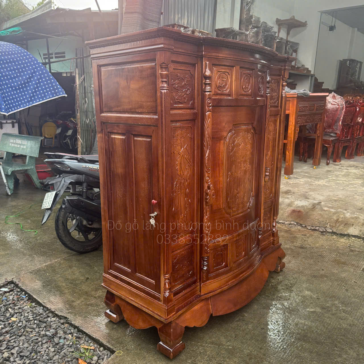 Hoa văn điêu khắc được chạm bởi thợ mộc lành nghề, độ thẩm mỹ cao và bền bỉ theo thời gian. Gia đình muốn sở hữu một chiếc tủ thờ đẹp, bền hãy liên hệ cho đồ gỗ Lăng Phượng tại Bình Dương để được tư vấn đặt hàng. Số điện thoại: 0338.552.882 (Nhận sỉ và lẻ - Đặt hàng theo yêu cầu)