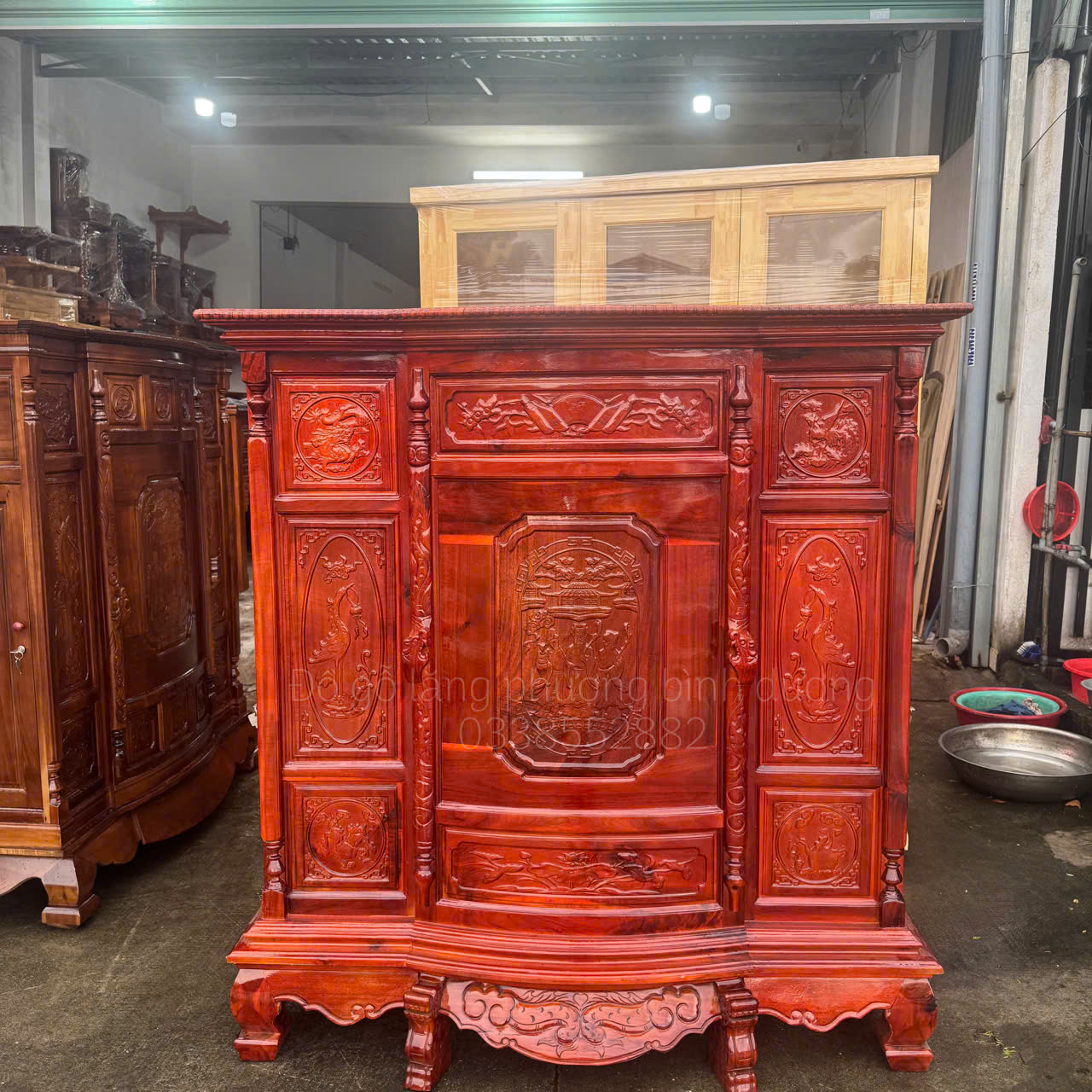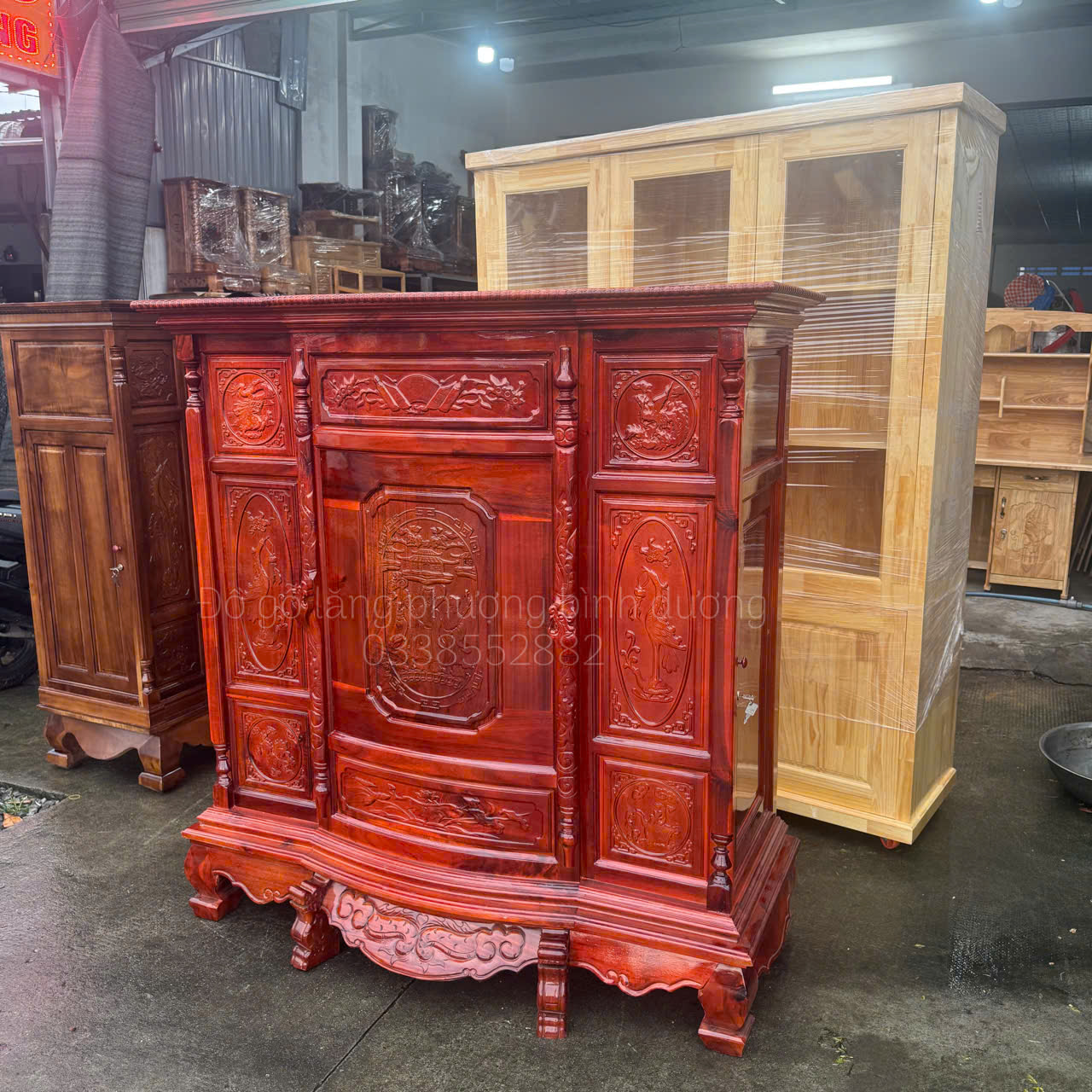 Kích thước Tủ Thờ Gỗ Tràm Bông Vàng 6 Chân